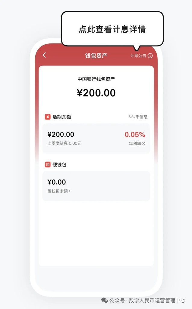 自2026年1月1日起,数字人民币实名钱包余额将按照活期存款挂牌利率计付利息。每季度末结息日之后,用户点击首页的钱包资产区域,进入钱包资产页哈福配资,即可查看结息详情。